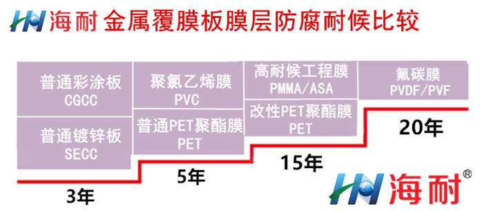 海耐金屬覆膜板是以熱鍍鋅板、熱鍍鋁鋅板、電鍍鋅板等為基板,經表面預處理(化學脫脂及化學轉化處理)之后,在表面覆膜的新材料產品。...